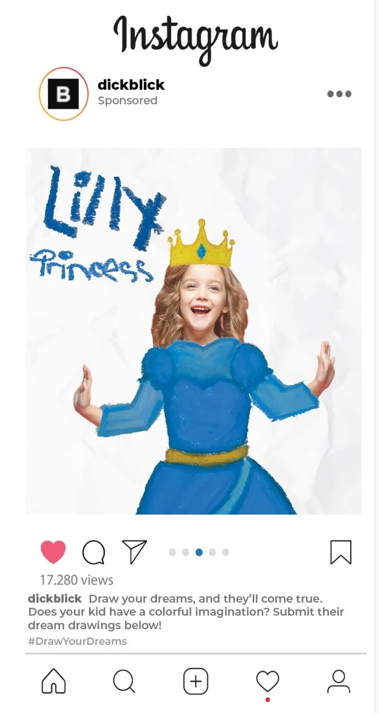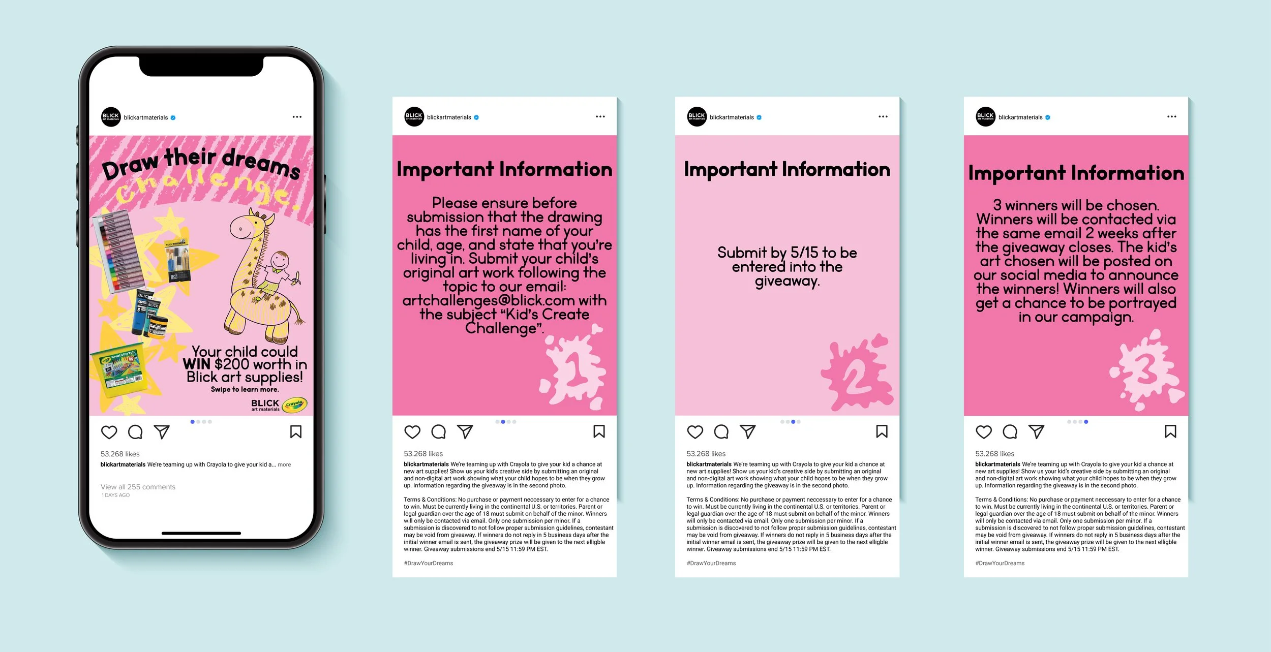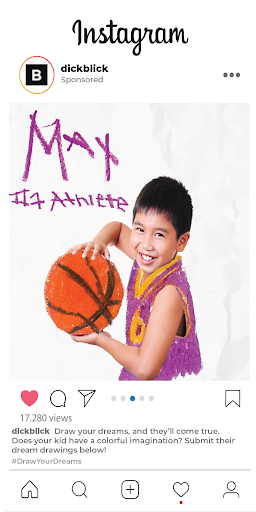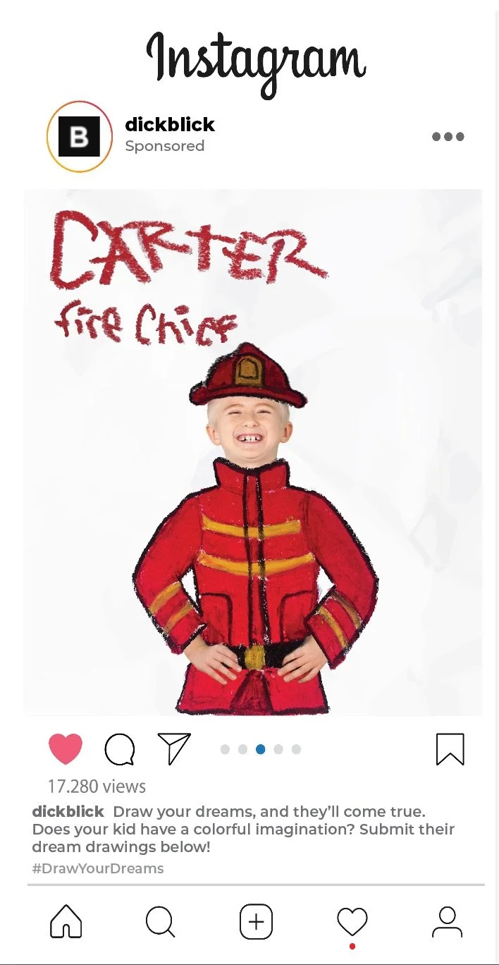 On social, this campaign features authentic drawings by kids at different stages to show real expressions from children, encouraging parents to see the value in every drawing and position Dick Blick as the place that supports those moments from start to finish.