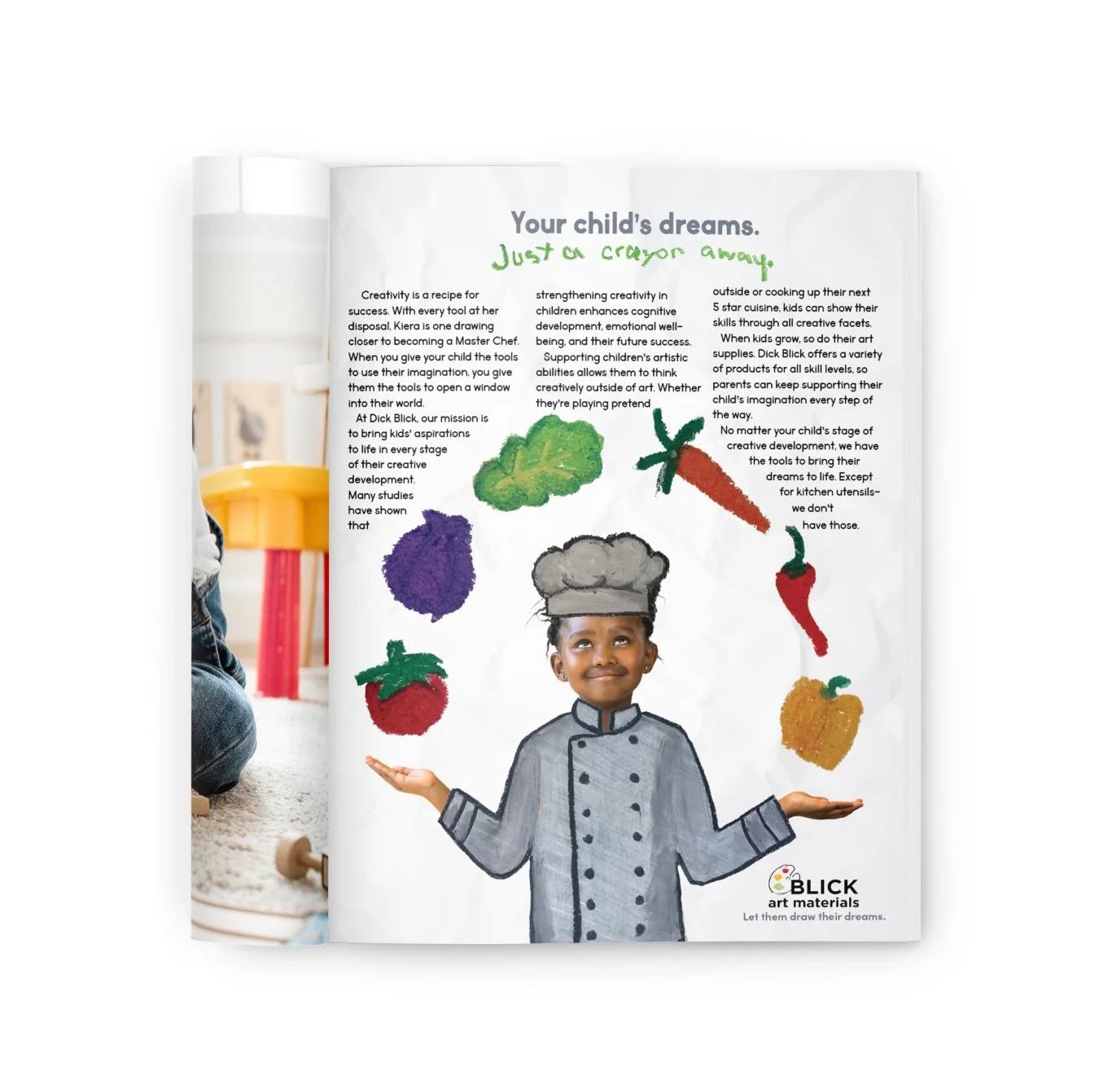 This magazine print appears in publications read by parents who are actively investing in their children’s growth and development. By placing the ad where readers are already seeking guidance and inspiration, the copy encourages them to see creativity as essential to their child’s journey, inviting them to nurture imagination early on.